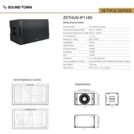 Sound Town ZETHUS-IP118S là loa siêu trầm thụ động, chuyên dụng cho hệ thống line array, được xây dựng với triết lý "sức mạnh và sự bền bỉ". Ngay từ thông số kỹ thuật, sản phẩm gây ấn tượng với khả năng chống chịu thời tiết đạt chuẩn IP55 và công suất xử lý lớn, hứa hẹn là giải pháp âm trầm đáng tin cậy cho cả sự kiện trong nhà lẫn ngoài trời